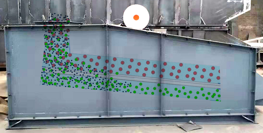 物料從水泥篩上部進(jìn)料口落入篩網(wǎng)上,篩網(wǎng)框與振動電機(jī)固定在一起,所以篩網(wǎng)隨著振動電機(jī)的振動作近似圓的軌跡運(yùn)動。物料在篩網(wǎng)上被不斷地拋起,并向前下方移動。物料中小于網(wǎng)孔尺寸的粉料及顆粒就穿過篩網(wǎng)落下。而大于網(wǎng)孔尺寸的雜物則從篩面流經(jīng)排渣口排出,從而完成篩分工作。減振彈簧是為了減少該機(jī)對地面的振動力。護(hù)網(wǎng)是為了防止安裝、維修時的工具或其它物件落入料倉中。