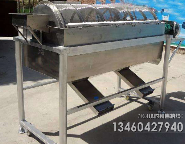 三、不銹鋼滾筒篩自帶料倉(cāng),料倉(cāng)下部有扇形閘門,粗料段有溜槽可以將粗料直接送到運(yùn)輸機(jī)械,便于工藝布置。圓回轉(zhuǎn)篩在汲取國(guó)內(nèi)外同類產(chǎn)品各項(xiàng)優(yōu)點(diǎn)并經(jīng)多年實(shí)踐而發(fā)展起來(lái)的新型篩分設(shè)備。其透篩率高,特別適應(yīng)粘濕物料的篩分,篩孔不易堵塞。