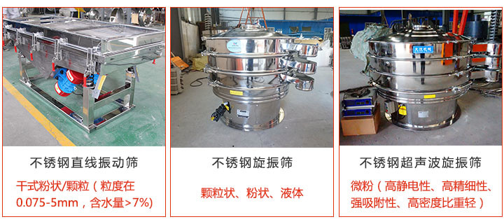 不銹鋼振動(dòng)篩分機(jī),顧名思義材質(zhì)為304、316等 不銹鋼材質(zhì)制造的篩機(jī),它適用用于細(xì)粉、微粉、及干、濕物料,干凈衛(wèi)生耐腐蝕,是食品化工行業(yè)篩分機(jī)械。有那些種類