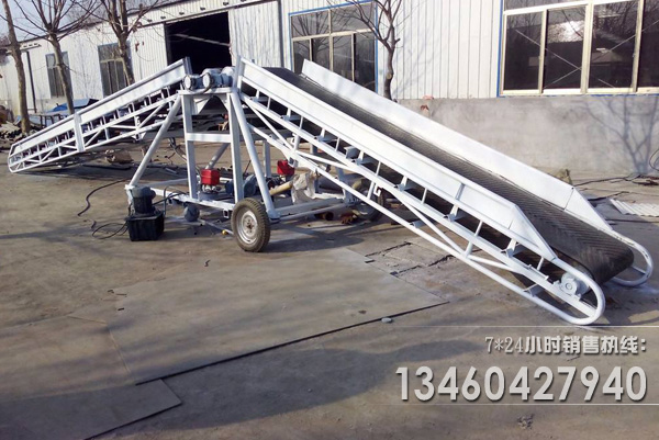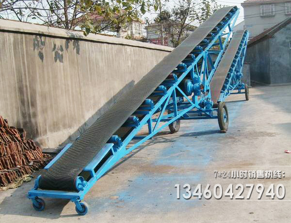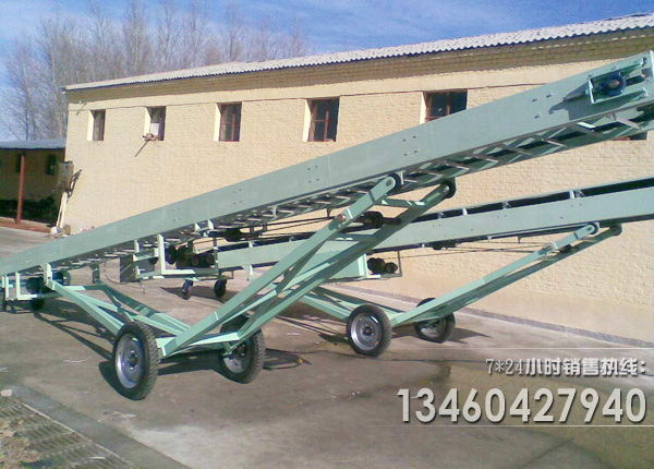 移動式皮帶輸送機也可叫做移動式上料機,移動式裝倉機,移動帶式輸送機主要應用在港口、碼頭、車站、煤場、倉庫、建筑工地、砂石料場、農場等場所,用來短途運輸及裝卸散料或單件重100公斤以下的成件物品。移動式皮帶輸送機適用于散運包裝的糧食或其它小顆粒物料的輸送、裝卸、碼垛、作囤、倒倉等倉庫的多種作業(yè),能進入庫內使用,也可在露天使用,可由幾臺串聯使用,或與其它倉庫機械聯合配套使用。